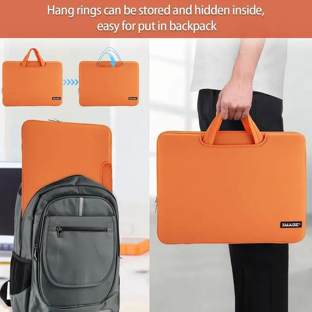 ^^ HIDDEN HAND STRAP: It is equipped with a hidden hand strap inside this laptop sleeve bag. In this way, you can take it out when you need it otherwise, you can store it away and put it in the bag when not in use.