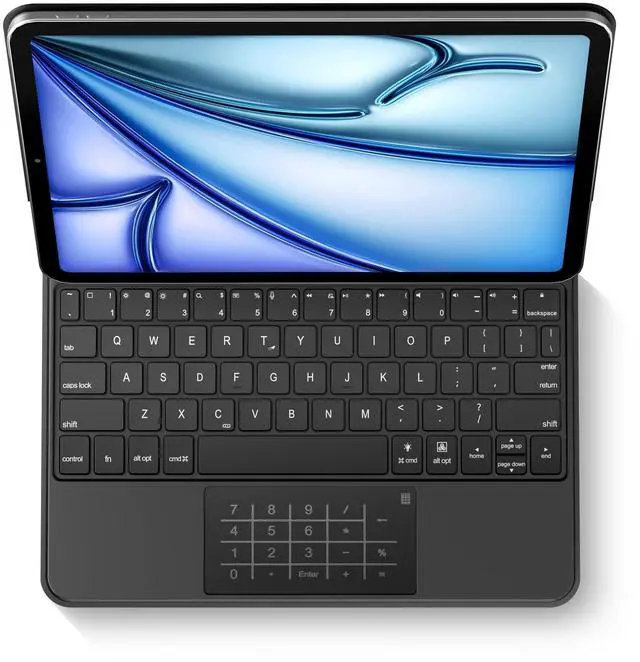 ^^ -- - &: Elevate your iPad experience with smart touchpad. You can easily switch back and forth to multi touch gestures or number input modes on the magic keyboard. Improved the speed of digital input tasks and increased work efficiency.