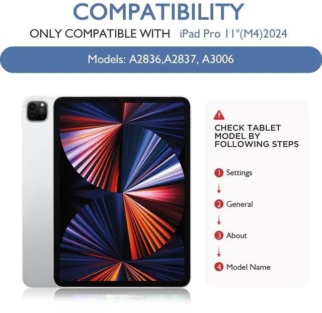 [Compatible Model] Compatible with iPad Pro 2024 11 inch. This folio works seamlessly with Case 2/Pro. ^^ [Slim and Stable] Lightweight design for easy portability while the front cover doubles as a stable stand for taking Zoom calls, web browsing, drawing, etc. ^^ [Premium PU Leather] Premium textured faux leather is used in the iPad cover which is protect your iPad from smudge & scratch, its not easy to leave fingerprint on the shell, which is also to prolong use to stay looking newer for longer. ^^ [Strong Magnetic Attachment]powerful magnets ensure a strong lock between case and tablet.
