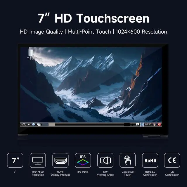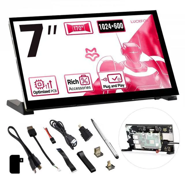 Up to 5-Point Touch (Depending on the operating system), can be used as screen for laptop. With capacitive touch control panel, smooth touch response is achievable, which enhance your interaction with this touchscreen for raspberry pi ^^ High Compatibility-----This 7inch HDMI screen (for Windows 7/8/7/ 8.1 /10/11) is aslo compatible with Raspberry Pi all versions (such as 4B, 3B+, Pi Zero, etc) ^^ High Definition IPS-----This 1024x600 resolution for pi touchscreen offers you smooth and natural visuals. Our portable screen for laptop features 170 wide viewing angle, ensuring consistent quality from different angles ^^ Plug and Play-----This for pi display is easy to set up and does not require driver installation ^^ Space-saving-----This 7 inch touchscreen LCD features recessed interface design and metal stand, which help save desk space and provide stability greatly