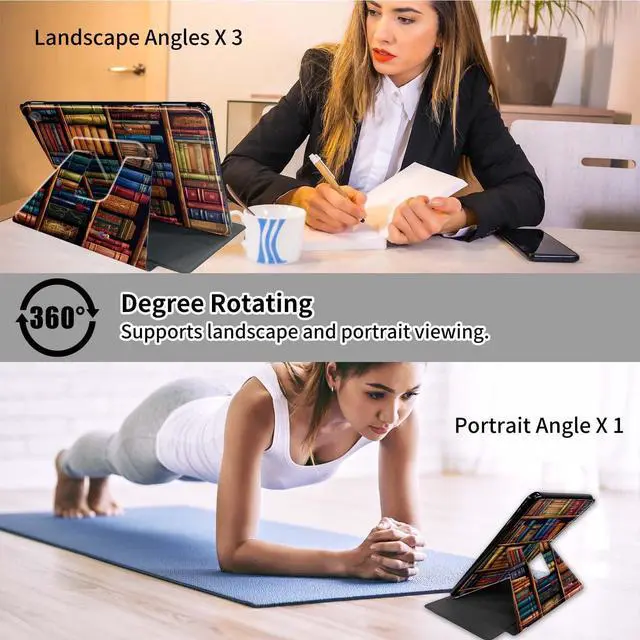 --360 degree kickstand design bring you into the ultimate using experience in portrait viewing stand angles. Easily adjust your tablet to the most comfortable angles and enjoy hands-free watching and facetime. -- Premium PU leather exterior, soft microfiber interior lining and hard PC back shell design protect your device against fingerprints and daily scratches. --Auto sleep / wake function. Automatically wake your tablet or put it to sleep by simply opening or closing the case.