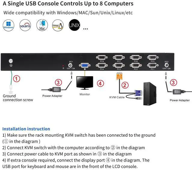 The durable build quality ensures smooth, reliable operation through years of frequent use, while the integrated security features including two-level password protection make this 8 Port Rack Mount KVM console a secure and reliable choice for modern IT infrastructure management.