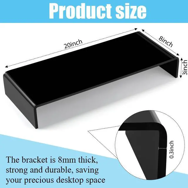 Durable acrylic: the acrylic monitor riser measures approx. 20 x 8 x 3 inches/ 50.8 x 20 x 8 cm (L x W x H), the black acrylic looks very elegant, and the fine polished acrylic complements any decors in your home or office; This product can be applied to hide various wireless keyboards under the bracket, not suit for keyboard, please notice before buying ^^