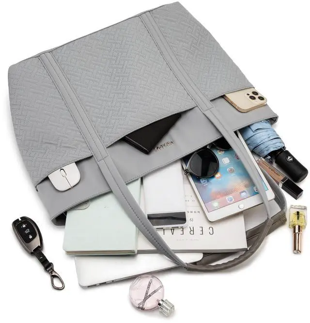 Large Capacity: The laptop tote has a capacity of 28L, which can accommodate laptops up to 15.6 inch. It also has multiple compartments and pockets, providing ample space for your phone, wallet, keys, notebooks, books, water bottles, power bank, etc.