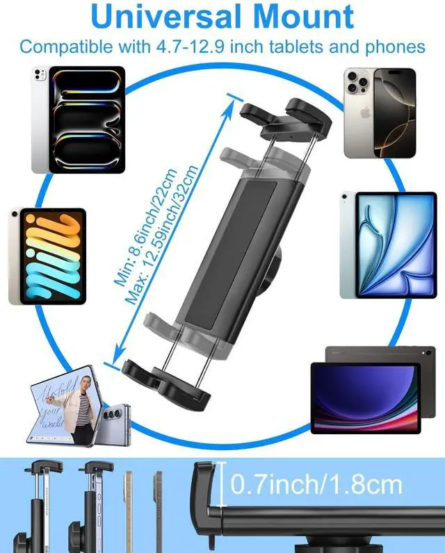 Tablet & Smartphone CompatibilityThis Car CD Slot Player Tablet Mount, the adjustable side clamps extend from 5.5 in to 11.4 in (14~29 cm) fits all 4-13 inch Device, such as iPad Pro 12.9 11 10.5 10.2 9.7, iPad Air 4 3 2 1, iPad Mini 5 4 3 2 1, iPad 8 7 6 5 4 3 2 1; smartphones iPhone 13, 13 Pro, 13 Pro Max, iPhone SE, iPhone 12, 12 Pro, 12 Pro Max, iPhone 11, XS, XS Max, XR, X, 8 Plus, 8, 7, 7 Plus, 6 Plus, 6; Samsung Galaxy Tabs/ Galaxy Note/ Galaxy S and more cell phones or Tablet devices.