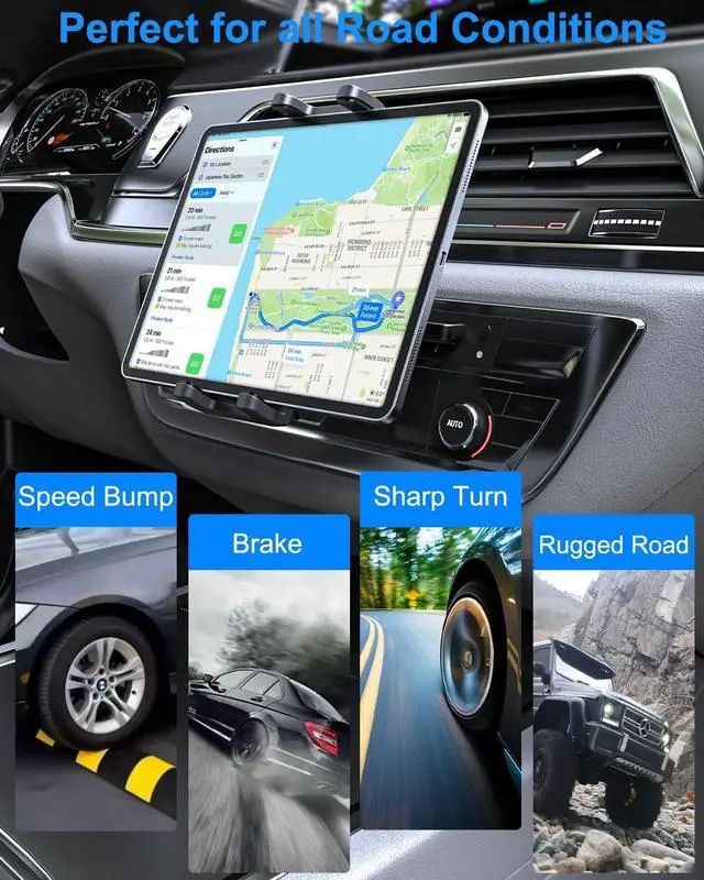 Secure CD Slot Clamp: Soft rubber-inserted CD slot blades Thickness can be adjusted up to 0.47 inch (12mm) to fit different thickness of CD slot can prevent your device from falling out of the CD slot. Whats more, the twist-lock allows you to tighten the clamp clip, showing a durable & stable car tablet mount for the CD slot. When you drive on a bumpy road or have a quick sharp turn, you can always count on this holder to hold your tablet.