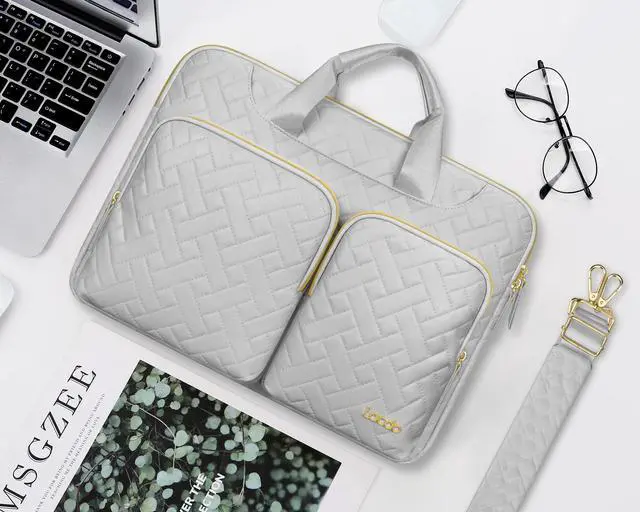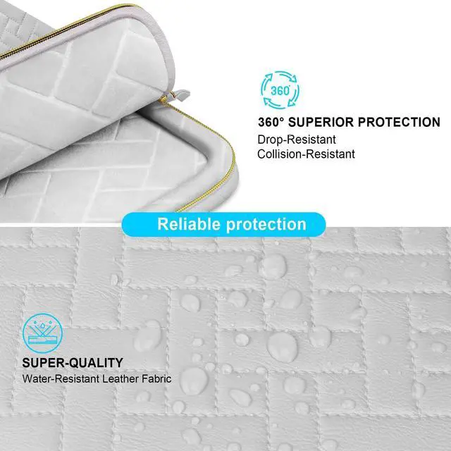 ^^ RELIABLE PROTECTION: 360 All-around protective Thickened Plush Edge, this computer bag excels in great cushioning and shock absorption, protecting your laptop from damages caused by shocks, bumps, or dropping. The laptop bag also filled with high-elasticity sponge buffer material for added further protection. Enhance laptop storage comfort, offer soft and sturdy protection. ^^ COMBINATION OF THE INNER AND OUTER QUALITIES: Soft velvet lining and the fancy leather fabric both designed with special quilted pattern which is water-repellent, scratch-resistant, hard-wearing and durable, offering unparalleled protection for your valuable laptop and everyday life.