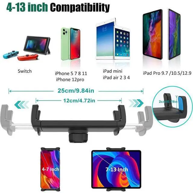 (Kindly drill the correct holes to install the metal drill base before you place the device. Accessories with 4 screws and plastic plugs. ) ^^ Flexible Adjustment The wall tablet holder with 360 degree metal swivel ballhead, allow you to easily adjust the tablet phone to hotizontal or vertical screen. The gear fixed joint design of this tablet stand can adjust 270 to provide you more flexible and stable viewing angle. ^^ Broad Compatibility This wall stand tablet holder fits all 4-13 inch Device, such as iPad Pro 12.9 11 10.5 10.2 9.7, iPad Air 4 3 2 1, iPad Mini 5 4 3 2 1, iPad 8 7 6 5 4 3 2 1, Samsung Galaxy Tab S8 S7 S6/A8 A7 A6, Android Tablet, smartphones iPhone 14 13, 13 Pro, 13 Pro Max, 12, 11, XS, XR, X, 8 Plus, 8, 7, 6, SE, Samsung Galaxy Note 20, S21, S21+, S20+, S20 Ultra, S10+ Tabs / Galaxy Note / Galaxy S Series, Surface Pro, Pixel C, Nexus 7 9, Tab E 4, Kindle Fire HD 10 8 7 6, Switch and more cell phones or Tablet devices.