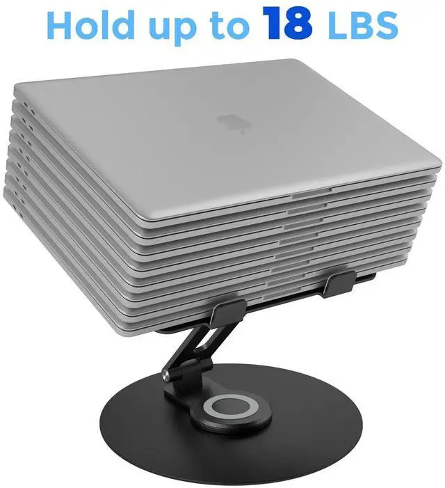 Rotatable: With a 360 rotatable turnable attached to the base, this laptop stand is supported by strong axis, allowing its top half to swivel flexibly to any angleso it's perfect and convenient for you to share the laptop's screen to your partners especially for collaborative work at the meetings.
