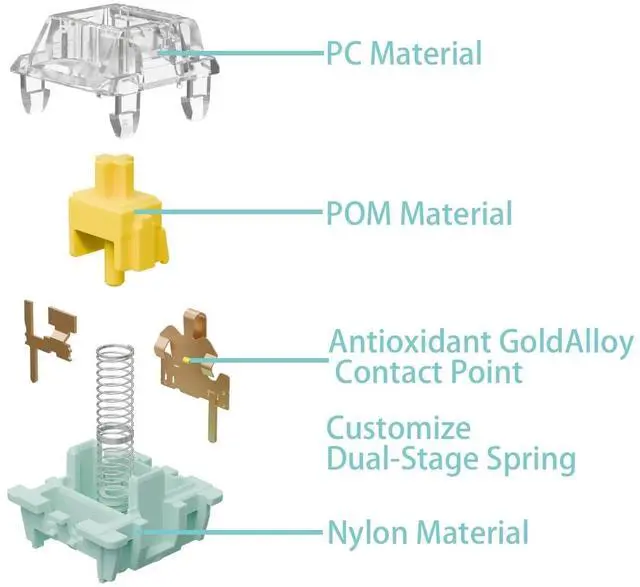 Switch]: JADE series 3.0 Keyboard switches, Factory fine Lubricated, Linear feel, more hand-friendly, quick rebound, corrosion resistance, very suitable for mechanical keyboard, customized for DIY enthusiasts customized Gaming key switches, and a lifespan of about 100 million keystrokes ^^ [Features]: New high-end mechanical keyboard switches, upgraded custom dual-segment spring optimized feedback and feel, antioxidant gold alloy contacts, improve the life and stability of the keys ^^ [Product