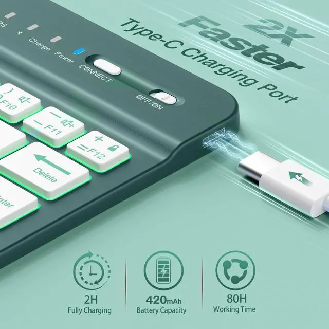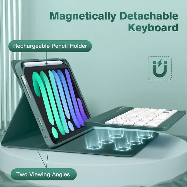Battery Rechargeable Keyboard: Equipped with a high-capacity rechargeable battery, the keyboard for iPad Mini 7th generation provides 40-80 hours of continuous use on a single charge, making it perfect for both work and play without frequent recharging interruptions ^^ Detachable 7-Color