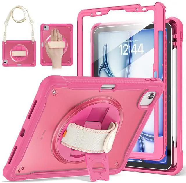All-around Protection & Easy Use: The product is made of PC+TPU, clear, you can DIY on the back according to your preference, and you can play freely on your iPad. The material is dirt-resistant, lightweight and easy to carry, the shoulder strap is adjustable, it also provides all-around conservation against scratches, bumps and shocks in daily use. The screen protector can also be removed at your own discretion ^^ 360 Rotatable Kickstand and