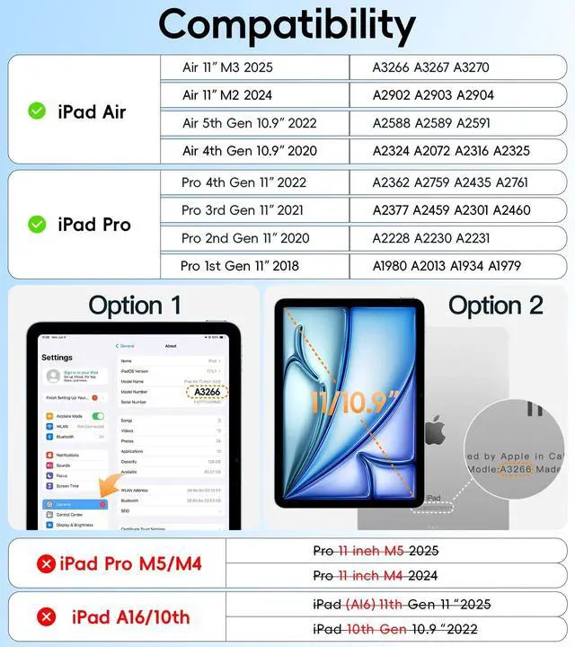 Compatibility: Lightweight and shockproof case for iPad Air 7th/6th genenration 11 inch (M3/M2)2025 /2024 and Air 5th/4th generation 10.9 inch 2022 /2020 & Pro 11 inch 4th /3rd /2nd /1st 2022 /2021 /2020 /2018 [MODEL: A2589 /A2591 /A1980 /A2013 /A1934 /A1979 /A2228 /A2759 /A2435 /A2761 /A2762 /A2301 /A2377 /A2459 /A2460]
