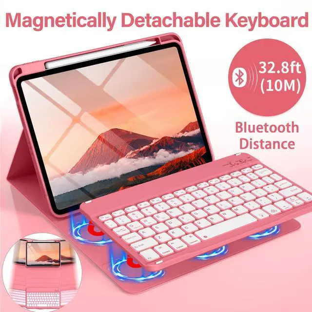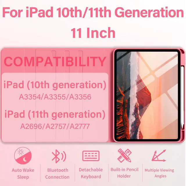 Model Numbers: (A2696, A2757, A2777). It is not suitable for any other models; please ensure you verify the model number on the rear of your iPad before purchasing a case ^^ Magnetic Detachable Backlit KeyboardThis iPad (A16) 11 inch 2025 case with keyboard is magnetic, so the keyboard can be firmly adsorbed, and the shortcut keys make it compatible with iOS, Windows and Android, which is very convenient. This backlit keyboard case for iPad 10.9 -inch 2022 comes in seven colors and two lighting modes to let you choose your favorite hue and brightness. Enjoy a comfortable typing experience even in low-light conditions ^^ Rechargeable Long Life BatteryOur iPad 11th/10th Gen case with keyboard has a built-in 420mAh large-capacity battery, which can be used for up to 420 hours on a single charge. It comes with a Type-C charging cable, which can be fully charged in 2 hours using the Type-C charging cable ^^ Multiple Viewing AnglesThis for iPad 11/10 Generation case with keyboard has 3 grooves to adjust the viewing angle as you like to meet your daily needs. Includes a top pencil holder and pen slot for easy storage.