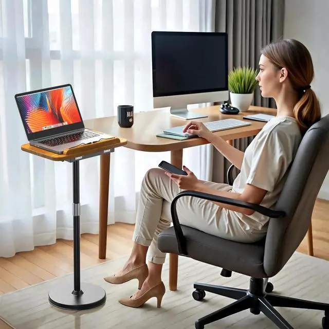 Dual Use Laptop Stand: Functions as both a desktop stand and a floor stand. Anti-slip pads on the tray and base ensure stability on all surfaces. Ideal for office, study, or entertainment, providing a stable and comfortable experience ^^