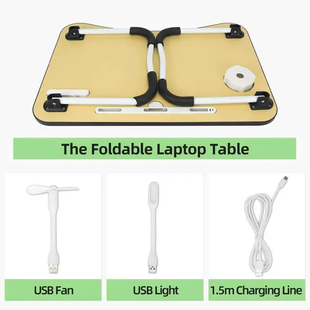 Detailed Function: This laptop bed tray has 4 USB charging ports, one tablet groove, one cup holder, the exquisite design is only for more comfortable sense of use. We also provide a free fan and a free light. Lightweight and Easy to