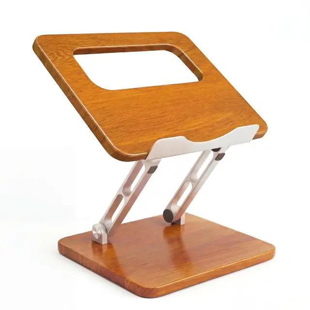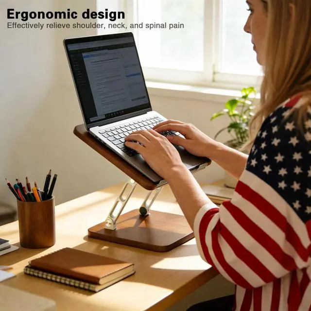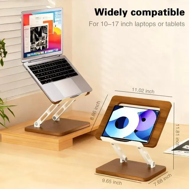 Ergonomic Adjustable Design: This laptop stand features a fully adjustable height (up to 11.8 inches) and tilt angle to maintain a comfortable viewing position, reducing neck and shoulder fatigue during extended use sessions. The natural wood grain finish helps reduce eye strain for enhanced visual comfort. ^^ Sturdy,