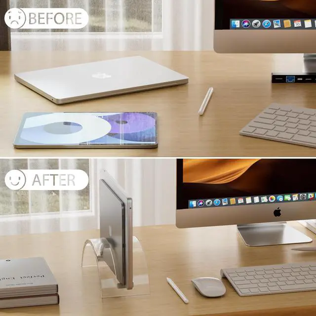 Minimalist Design& Acrylic Craft: MaybeRain laptop vertical stand is made of clear, high quality acrylic material and features a stylish, minimalist design that is both practical and space-saving, while also adding a unique look and feel to the desk setup. ^^ Lifetime Effective Quality Assurance&Gift IdeasWe are committed to providing consumers with the absolute best price and value on our entire line of acrylic laptop stand. Once there is a quality problem, email us, and you will get a brand-new replacement!