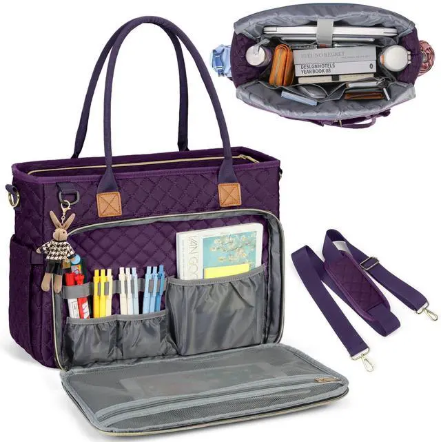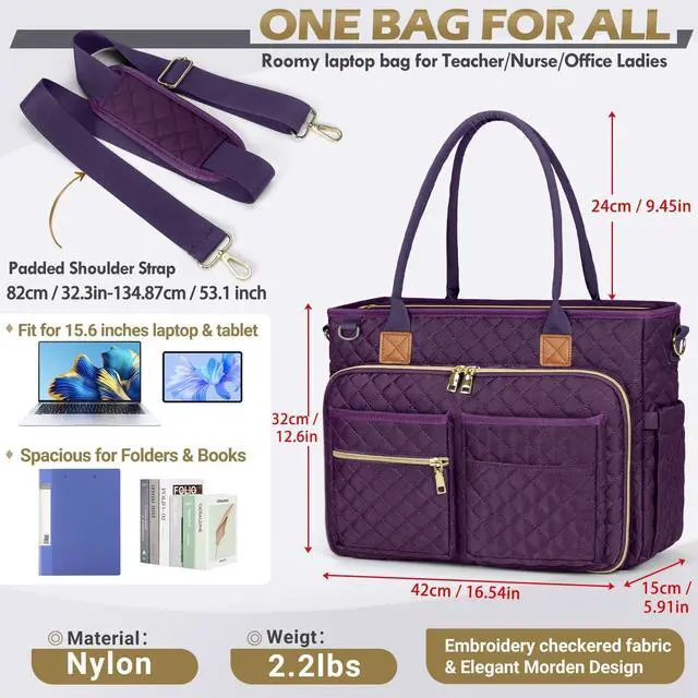 High quality quilted teacher laptop tote bag aims to provide a sturdy and reliant user experience ^^ CONVENIENCE DESIGN FOR TRAVELERS- The luggage strap in the back allows this women tote bag to slide over the luggage tube, to free your hand on the go. The standard size of this women laptop bag makes this a good airplane travel bag, it is able to fit in the overhead bin and under seat space. The laptop bag for women also provides multiple ways of carrying, it can serve as a shoulder bag, office bag, laptop carrying bag, or laptop cross-body bag ^^ IDEAL GIFT CHOICE- Laptop tote with combined elegant appearance and practical design.