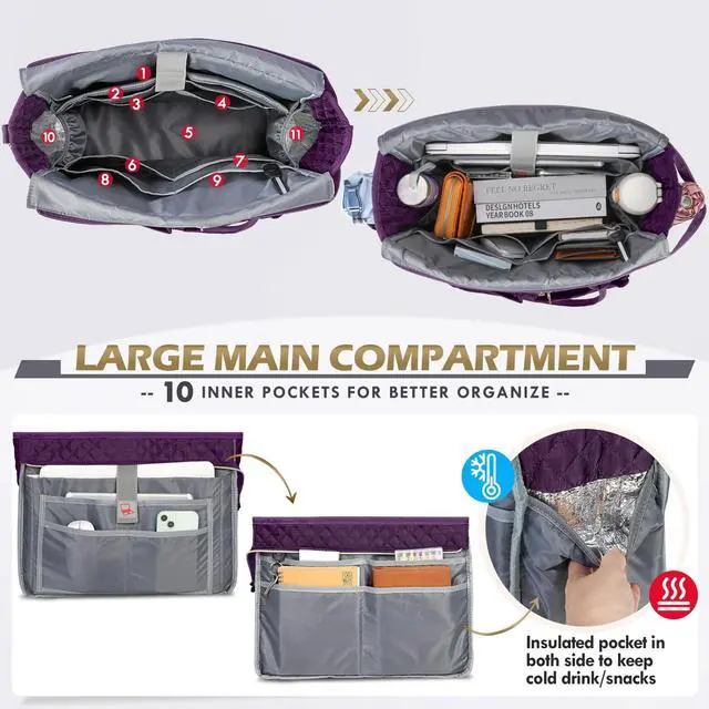 LARGE CAPACITY & MULTIPLE STORAGE- With 10 inner pockets is cleverly designed to hold from teaching materials to personal essentials. The padded laptop sleeve securely fits up to a 15.6 laptop plus a 12.9 iPad, while keeping all items neatly in place. Two insulated side pockets keep drinks or snacks at the right temperature for hours. With everything sorted and within reach, transition seamlessly between lessons, meetings, and after-school duties, all while maintaining a polished look ^^ MULTIPLE ORGANIZER POCKETS- Stay organized with 21 pockets in and out. This tote keeps you effortlessly organized without sacrificing style or space.