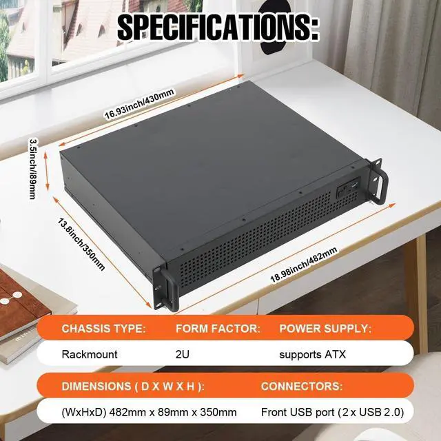 ^^ Broad Hardware Compatibility - This 2U rackmount case accommodates Mini ITX and Micro ATX motherboards (up to 9.6" 9.6" ) and standard ATX power supplies (max 5.5" depth with 80mm rear exhaust), providing exceptional build flexibility. ^^ Professional Front Panel Features - With USB 3.0 connectivity, power and reset controls, and status indicators, this server rack pc case offers convenient access and monitoring capabilities for professional applications.