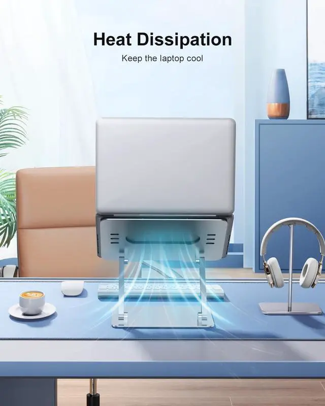 Made of top-grade aluminum material, this computer riser built with airy holes design on the top base provides excellent heat dissipation and prevents your laptop from overheating for better performance ^^ Compact Design. This laptop stand holder elevates your laptop from the surface and creates a place for you to put your keyboard, iPad, smartphone, pen, and other accessories, helping create a clean and organized desktop. Easy to fold when not in use