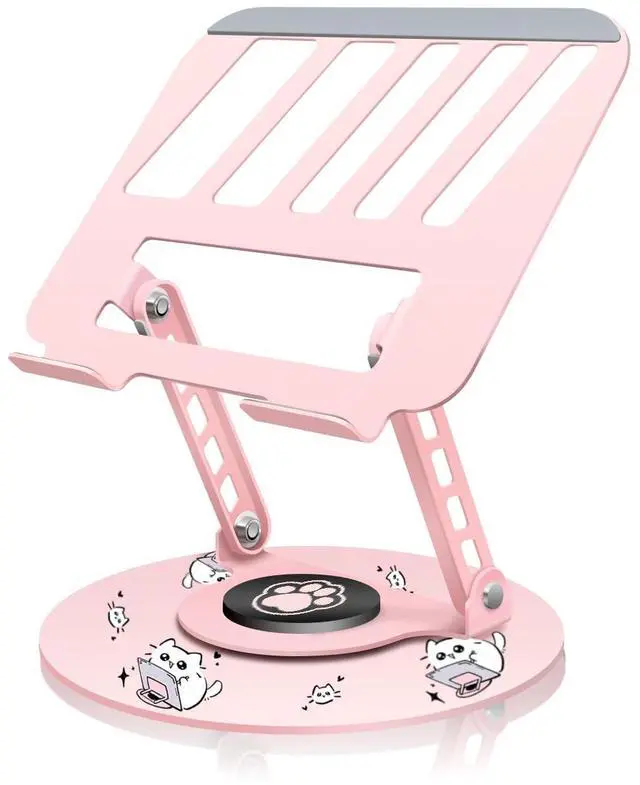 Enhanced Heat Dissipation+Protective Padding: This pink swivel laptop stand, Keep your laptop cool and safe! Breathable cutouts on the top platform promote airflow, preventing overheating during heavy use (gaming, video editing, or Zoom marathons). Weve also added thick rubber padding on the platform and bumpers around the edgesno scratches on your laptop, and a non-slip grip that holds devices securely, even at steep angles ^^