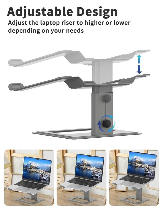Suit for Laptops 10 to 17.3 Inches - The new generation laptop stand compatible with all notebook computers 10- 17.3 inches. Durable aluminum design ensures solid stability to hold laptop up to 20lbs. ^^ Height Adjustable - You can adjust the laptop riser to higher or lower depending on your needs. It keeps your laptop up high so that you can save more desktop space for your keyboard, mouse, files and other office supplies. ^^ Ergonomic Design - The laptop holder elevates your computer notebook screen to level with your eye sight, which prevents you from hunching over the screen, reducing neck and shoulder pain.
