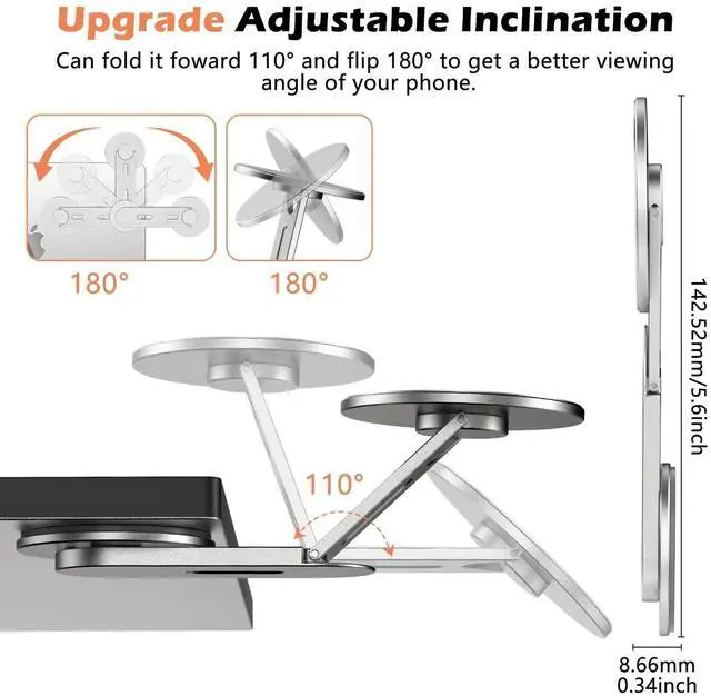ULTIMATE CONVENIENCE: Featuring a 110 foldable and 180 flippable magnetic phone holder made from lightweight aluminum alloy, ensuring your phone is always within reach and providing an optimal viewing angle during work, meetings, travel or daily use ^^
