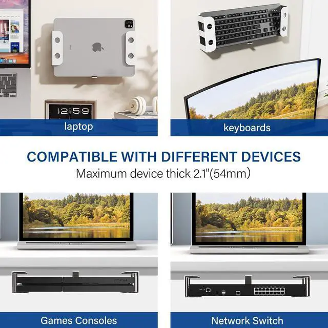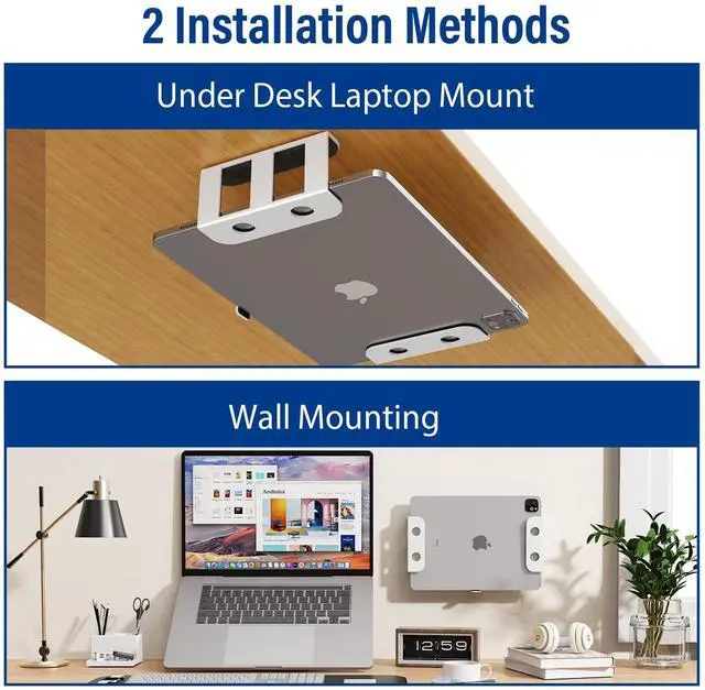 Space Saving: Our laptop stand sits under the table, saving valuable desktop space and bringing you great convenience. It not only supports laptops, but also suitable for devices up to 2.1 inches thick. for Macbook, laptops, Mac Mini, cable boxes, modems, smart TV boxes and more. It can effectively save space, keep leg room and prevent your legs from being impacted! It also keeps your desktop environment cleaner and more organized ^^ High
