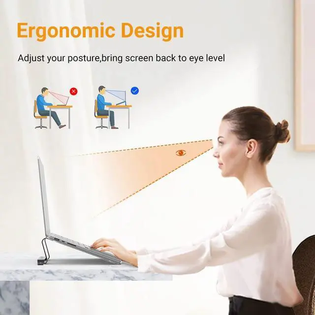 NO PAIN ON NECK & SHOULDER: Ergonomic MacBook Stand reduces neck and shoulder pain by elevating the laptop to an ideal viewing level, bring your eye back to screen and sit in a good posture.
