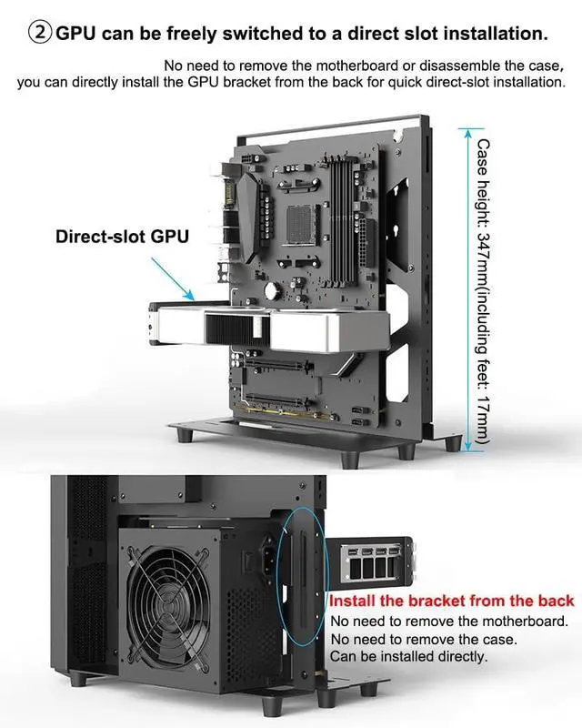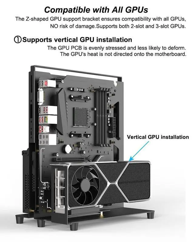 ^^ Graphics Card Installation: Supports vertical installation and direct plug-in of the graphics card.