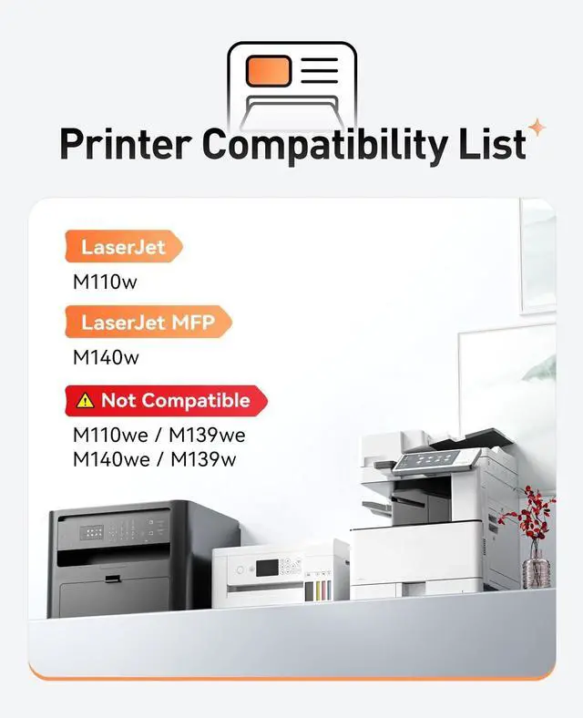 ^^ Compatible Printer: Compatible with HP LaserJet M110w MFP M140w Printer. Not Compatible for "HP+" Service "e" Series Printer, NOT Compatible for Suffix with