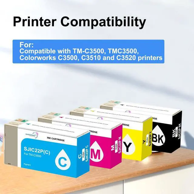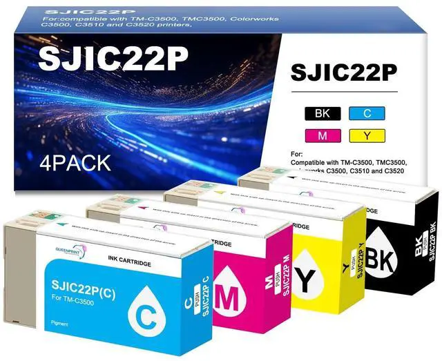 [sjic22p ink cartridge]SJIC22P Ink Cartridges Replacement is perfectly compatible with TM-C3500, TMC3500, Colorworks C3500, C3510 and C3520 printers [c3500 ink]This cartridge replacement comes in a 4-Pack combination, including