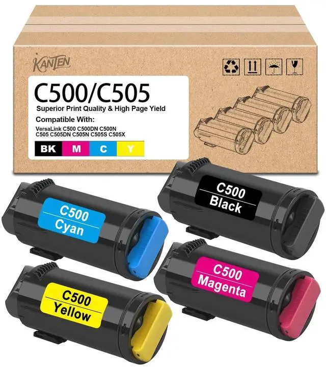 Packaged Includes 4 Pack C500 C505 Toner Cartridges (1 Black 1 Cyan 1 Magenta 1 Yellow) ^^ Compatible With Compatible for Xerox VersaLink C500 C500DN C500N C505 C505DN C505N C505S Printer ^^ Product Code 106R03862 106R03863 106R03864 106R03865 printer ^^ High Capacity 5, 500 Pages for C500 C505 Black Toner Cartridges, 3, 500 Pages for C500 C505 Color Toner Cartridges (Letter A4, at 5% Coverage) ^^ With Chip The C500 C500DN C500N C505 C505DN C505N C505S toner cartridge is equipped with an chip that printer proactively monitors page count and toner levels ^^ Important Reminder To ensure proper functionality, please verify your devices compatibility with our 106R03862 106R03863 106R03864 106R03865 toner cartridges before purchasing