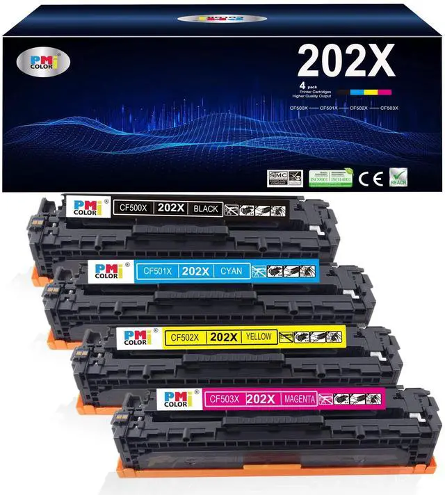 ^^ Package Include: 202X toner cartridges 4 Pack (1 Black 1 Cyan 1 Yellow 1 Magenta) ^^ all 202X toner are made in an ISO 9001 and ISO 14001 certified facility ^^ Toner Cartridge adapt latest upgraded chip that can be quickly recognized by the printer. to ensure compatibility and reliability for exceptional performance provideslong-lasting printing experience
