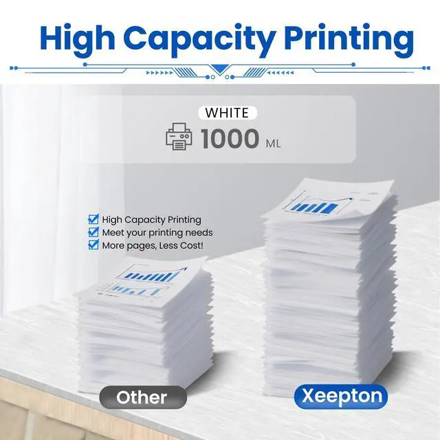 Compatible Printers: Xeepton premium DTF white ink work with All DTF Printer with printhead A3 DTF printers, and wide format DTF printers eg L1800, L805, R1390, 4720, I3200, XP600, DX7, DX5, 5113, 1430, TX800, P400, P408, P640, P600, P608, P800, P5000, P6000, R1800, R1900, R2000, R2400, 4800, 4880, 4900, 7880, 7890, R3000, R3880, F2000, F2100, F2200, P700, P900, XP-15000 and more ^^