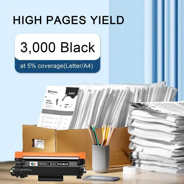 ^^ High Page Yield: Up to 3, 000 Pages Per TN830XL Black Toner Cartridge at 5 Percent Coverage of Paper.