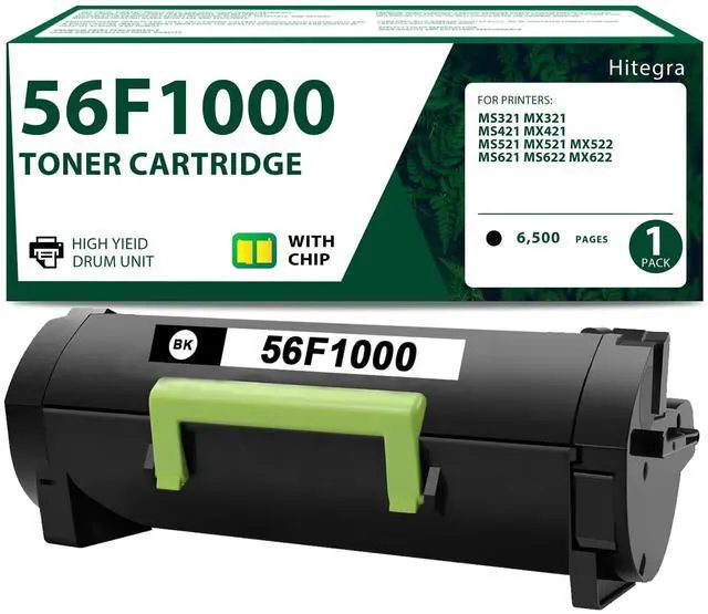 Remanufactured 56F1000 Toner Cartridge - 56F1000 toner cartridge with 1 pack (Black/56F1000), upgraded materials and chip bring the perfect printing experience ^^ High Capacity Yield Pages - MS622 MX622 toner cartridge up to 6, 500 pages for black, based on 5% coverage of A4/Letter ^^ Compatible with Printers - 56F1000 toner cartridge replacement for Lexmark MS321 MS321dn MX321 MX321adn MX321adw MS421 MS421dn MS421dw MX421 MX421ade MS521 MS521dn MX521 MX521ade MX521de MX522 MX522adhe MS621 MS621dn MS622 MS622de MX622 MX622ade MX622ad printers ^^ 56F1000 Black Toner for Hitegra - MS621 toner can automatically recognize the printer, and press determine key according to the reminder after connecting the printer.