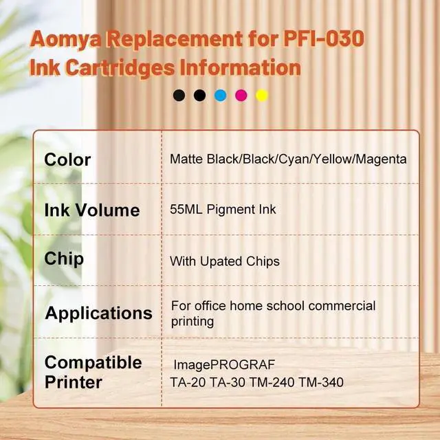 Compatible Printer: PFI-030 Ink Cartridge Replacement for Canon imagePROGRAF TA-20 TA-30 TM-240 TM-340 Printer.