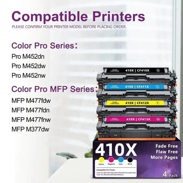 Compatible Printers: Replacement for hp 410a 410X toner cartridges 4 pack High Yield, Compatible for HP Color LaserJet Pro MFP M477fdw MFP M477fdn MFP M477fnw MFP M377dw, Pro M452dn M452dw M452nw printer ^^
