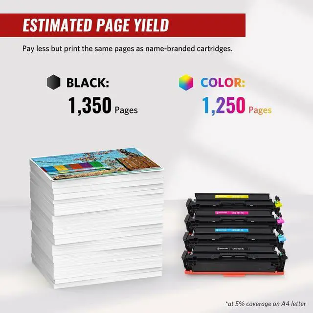 [COMPATIBLE PRINTERS] Compatible with Canon Color ImageCLASS MF650C Series MF652Cdw MF652Cw MF653Cdw MF654Cdw MF656Cdw Printer; Canon Color ImageCLASS LBP630C Series LBP632Cdw LBP633Cdw Printers. ^^ [PACKAGE CONTENTS] 4 Packs S SMARTOMNI compatible 067 CRG067 toner cartridges (4 Packs - 1Black /1Cyan /1Magenta /1Yellow). ^^ [ESTIMATED PAGE YIELD] 1350 pages per Black toner cartrige, 1250 pages per Color toner cartridge on 5% coverage (letter/A4). ^^ [PREMIUM MATERIAL] High quality materials and robust construction for stable printing performance. ^^ [OUTSTANDING TEAM] All S SMARTOMNI toner cartridges are in strict accordance with a high-quality standard and manufacturing process.