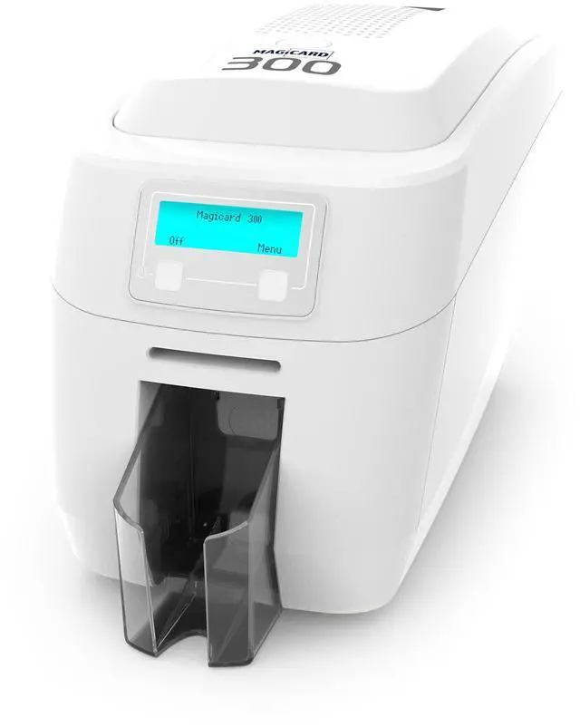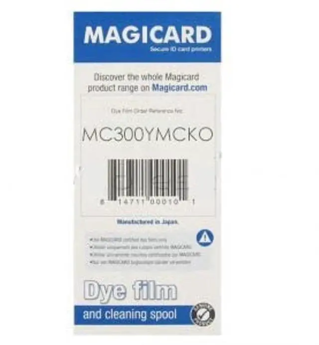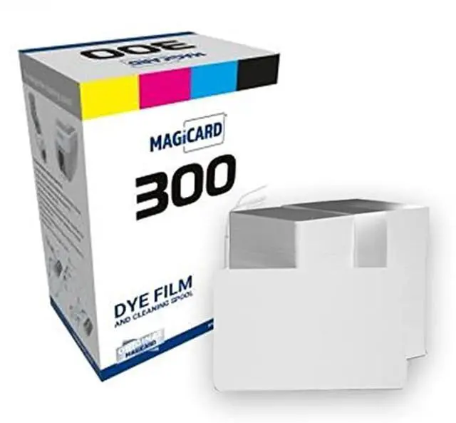 Compatible with the Magicard 300 Single Sided and Dual Sided 100 Card Imaging Premium CR80 30 Mil Graphic Quality PVC Cards (same thickness and size as a credit card) Genuine Magicard Brand Part # MC300YMCKO 300 Prints YMCKO - Single Sided / 150 print - Dual Sided - Full Color Easy and convenient purchase cards and ribbons together for your ID printer