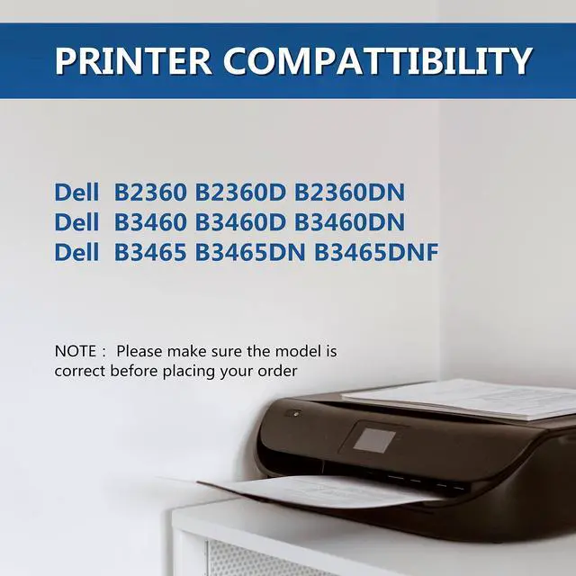 ^^ Compatible with: Replacement for Dell B2360D B2360 B2360DN B3460 B3460D B3460DN B3465DN B3465DNF 2360 M11XH 331-9805 toner cartridge. ^^ This brand new compatible product was made in ISO9001/14001 certified factory, not made by Dell. The use of it does not void your printer warranty. ^^ The image of packaging box shown here only supplies the reference, the actual boxes of product packaging shall govern.