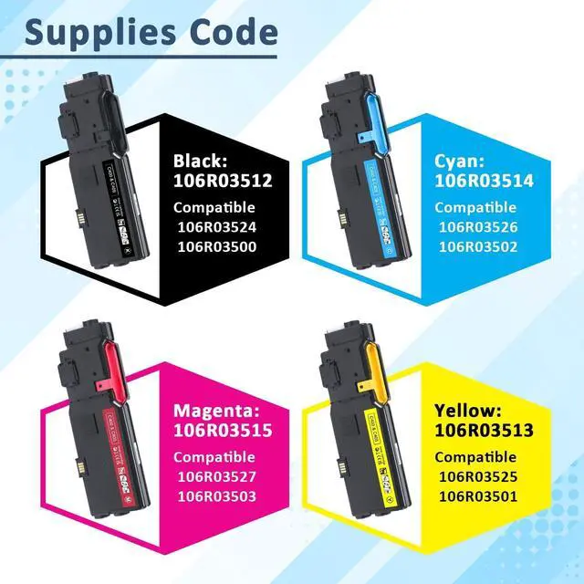 ^^ Packing list: 1 Pack 106R03512 black toner cartridge, 1 pack 106R03513 yellow toner cartridge, 1 pack 106R03514 cyan toner cartridge, 1 pack 106R03515 magenta toner cartridge.