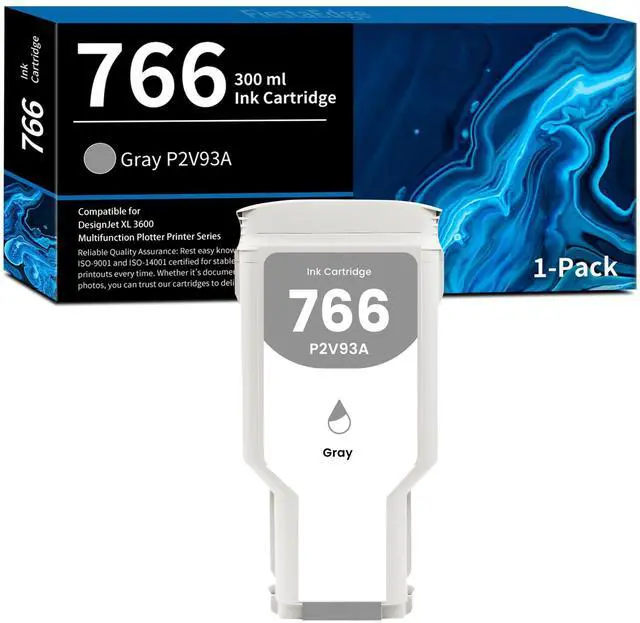 [1-Pack 766 Ink Cartridge Includes] - Replacement for HP 766 Gray Ink Cartridge - P2V93A ^^ [766 Ink Cartridge Page Yield] - Up to 300ml per 766 Gray Ink Cartridge, More Ink, More Pages with 766 P2V93A Ink Cartridge ^^ [Compatible Printers] - 766 Ink Cartridge Compatible for HP DesignJet XL 3600 Multifunction Plotter Printer Series Printer ^^ [Good Compatibility] - Each 766 P2V93A ink cartridge has passed the quality and function test before leaving the factory, ensuring the quality of ink cartridge replacement parts ^^ FiestaEdge 766 P2V93A ink cartridge whether you print documents, presentations or graphics, you'll get consistent and reliable printing effect, just like it will not damage the printer