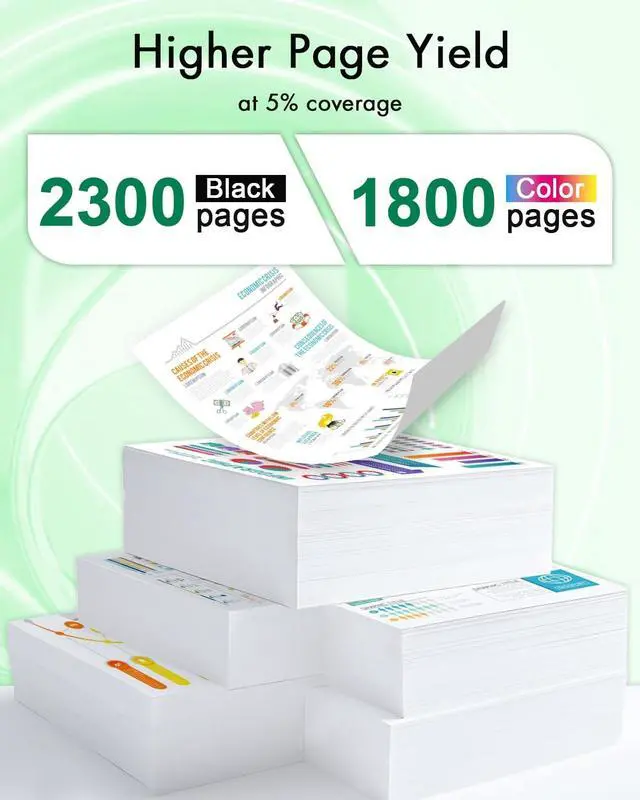 High Page Yield: 2, 300 Pages Per Black 952XL Ink Cartridge and 1, 800 Pages Per Color 952xl Ink Cartridges (Based on 5% Coverage) ^^