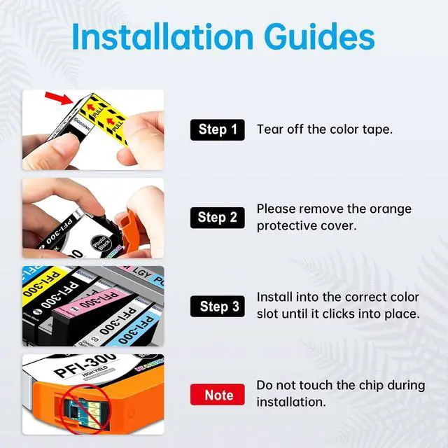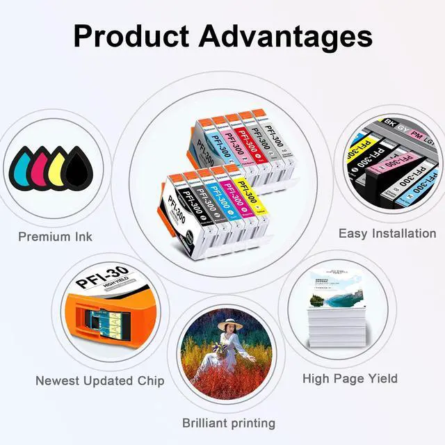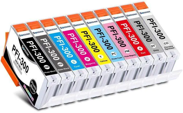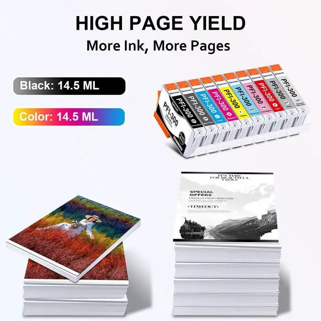 High-QualityBOSSINK pfi 300 ink cartridge is equipped with the latest smart chip, which undergoes strict quality control to ensure fast and easy installation and instant recognition. BOSSINK pfi-300 ink cartridges are a no-brainer for replacing Canon imageprograf pro-300 ink cartridges. ^^ High CompatibilityCompatible with Canon ImagePROGRAF PRO-300 Printer. BOSSINK pfi 300 ink cartridges are a no-brainer for Canon imageprograf pro-300 ink ^^ Premium Ink Output 14.5 ML per PFI-300 Ink Cartridges ^^ Package Content 10 Pack PFI-300 Ink Cartridge ( Photo Black / Matte Black / Cyan / Magenta / Yellow / Photo Cyan / Photo Magenta / Red / Gray / Chroma Opti), 1 x glove.