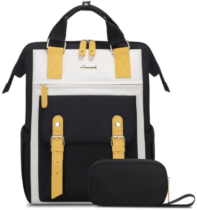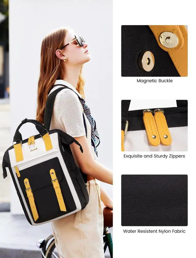 LOVEVOOK 17.3 Laptop Backpack for Women, Teacher Nurse Bag Work Travel Computer Backpacks Purse,Water Resistant Daypack,Y Beige Black 17.3in