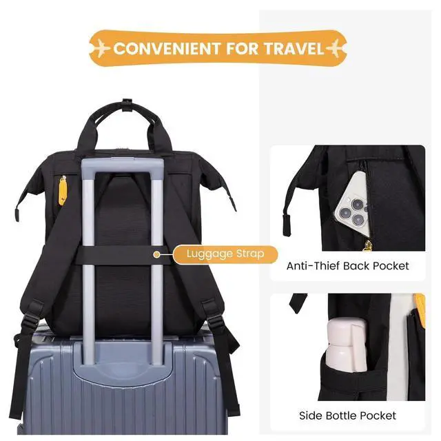 • Women Travel Backpack: Traveling with this personal item travel bag is a breeze, thanks to the trolley strap that can attach to your luggage. The stretchy side pockets are perfect for holding water bottles, and with a hidden anti-theft pocket, you can travel with peace of mind